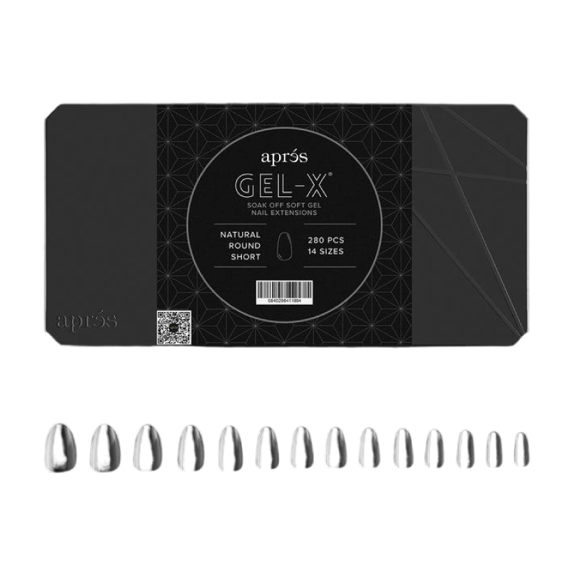 APRES Gel-X Soak Off Soft Gel Nail Extensions 280 Pcs – Natural Round Short are pre-formed nail extensions designed for quick and easy application using the Apres Gel-X system. With a natural round shape and a short length, these extensions offer a classic, soft, and practical look for everyday wear. Made from soft gel, they provide flexibility and durability, and can be easily removed by soaking with acetone. The pack of 280 units is a convenient size for both professionals and frequent personal use.