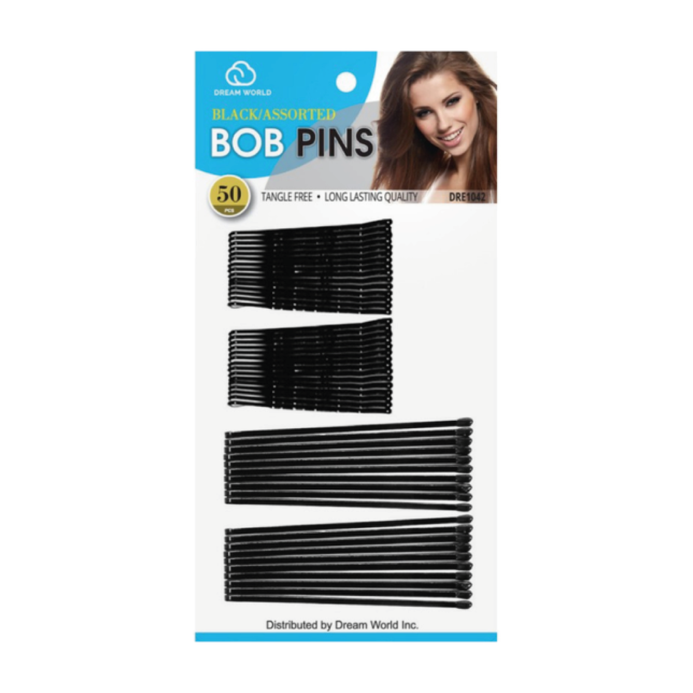 DREAM WORLD PRODUCTS Black Assorted Bob Pins – DRE1042 hair pins are essential hair styling accessories. They come in an assortment of sizes and styles, making them versatile for various hair types and hairstyles. Their black color makes them discreet and suitable for many hair tones. Brand: DREAM WORLD PRODUCTS Color: Black Material: Generally, these pins are made of coated metal to provide grip and prevent hair damage. Number of items: The number of pins per package varies, but they usually come in large packages. Product Benefits: They help secure hair in place to create hairstyles. They are useful for holding loose strands. They provide stability for complex hairstyles. Use: They are used to secure strands of hair in place, whether to create updos, secure bangs, or secure hairstyles.