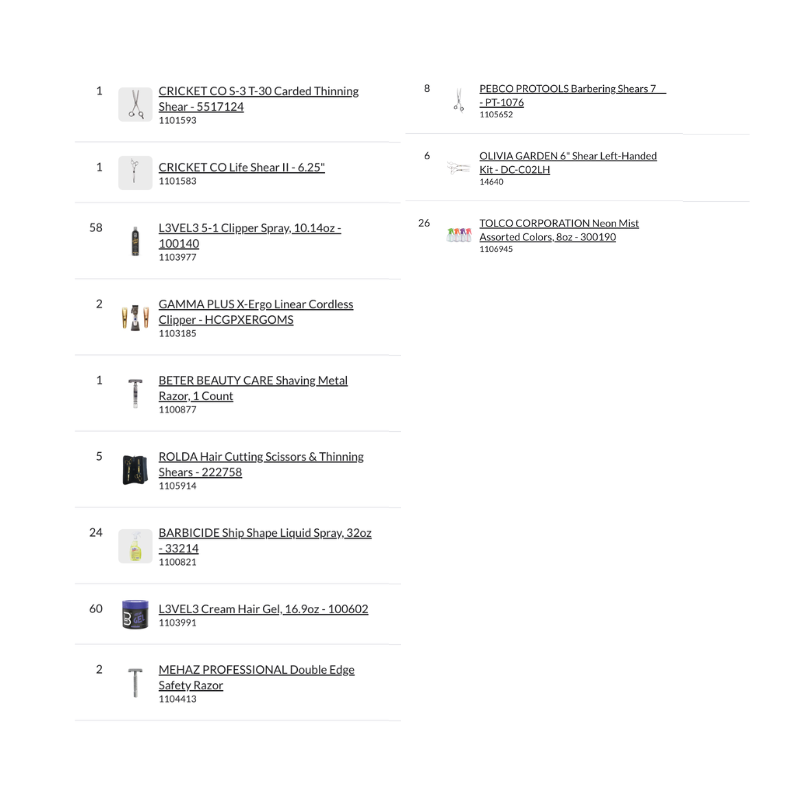 This pallet is ideal for setting up or restocking a small barbershop with professional-grade equipment and daily-use barber essentials.