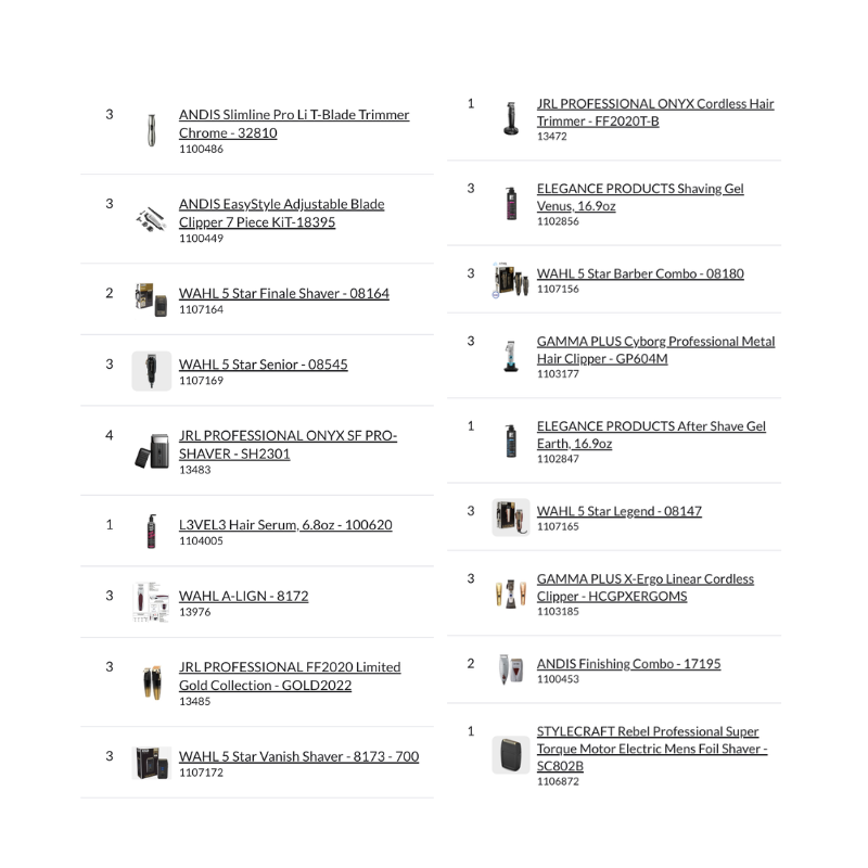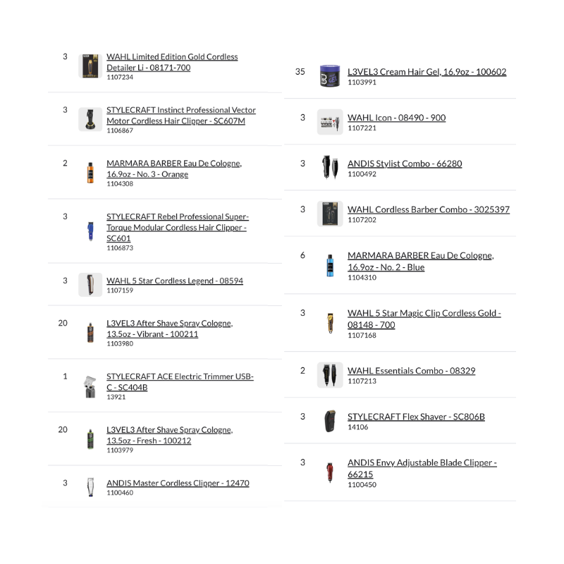 This pallet is ideal for fully equipping professional barbershops, high-volume wholesale distribution, or premium barber supply retail operations.