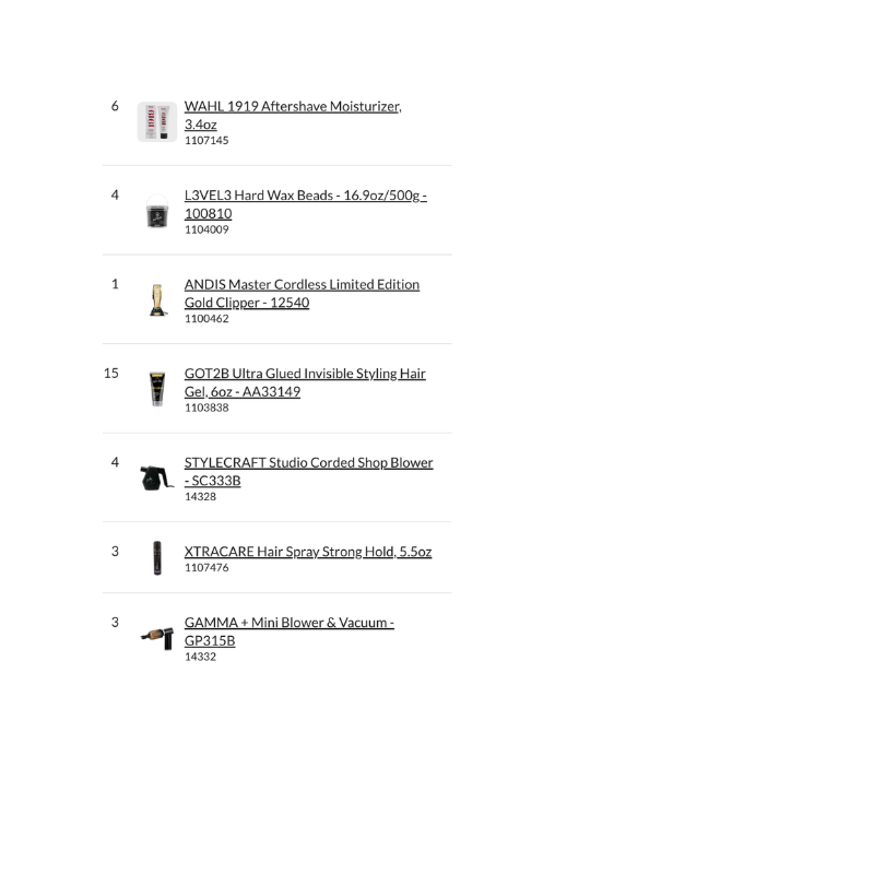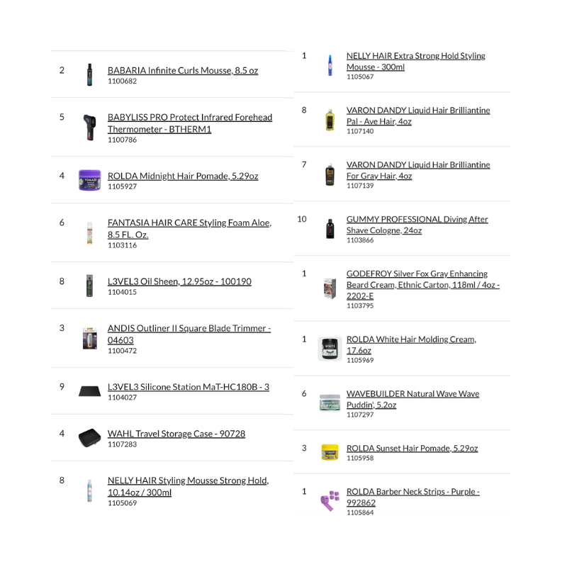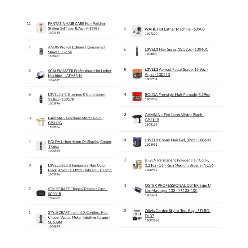 This pallet is ideal for fully equipping barbershops, wholesale distribution, or high-volume barber supply retail operations.