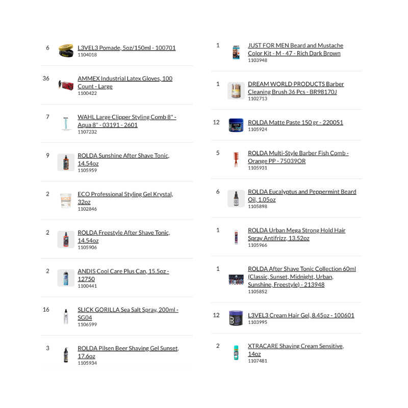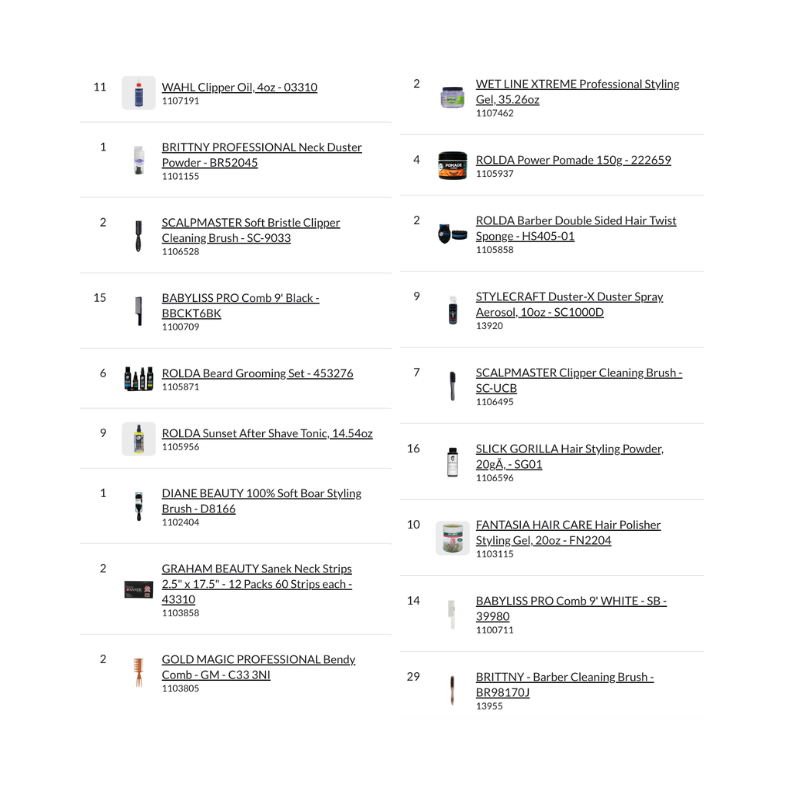 This pallet is ideal for fully stocking barbershops, large-scale wholesale distribution, or high-volume barber supply retail operations.