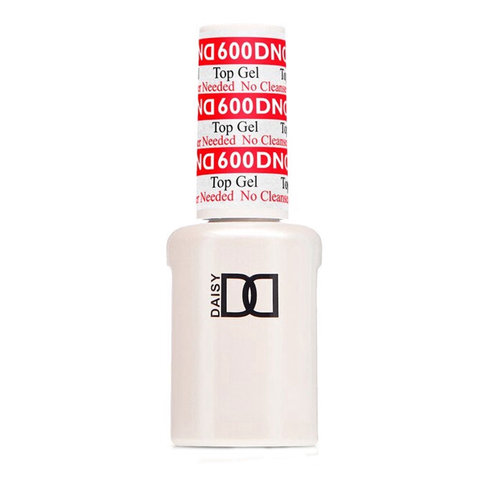 DAISY DND Gel Top Coat – 600 is a no-wipe gel top coat designed to provide a high-shine, durable, and long-lasting finish to gel manicures and pedicures. Unlike some traditional gel top coats, this formula does not leave a sticky residue after curing, eliminating the need to wipe the nails with cleanser or alcohol. It seals the gel color, preventing chipping, peeling, and fading, and can last for weeks. This top coat requires curing under a UV or LED lamp.