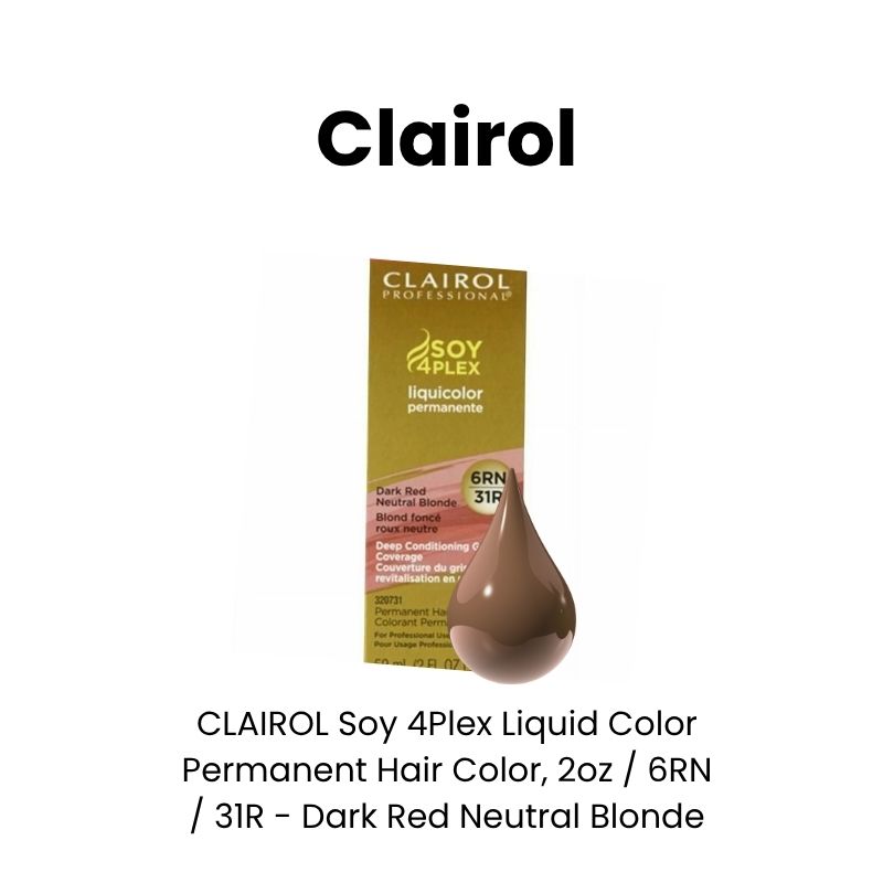 CLAIROL Soy 4Plex Permanent Cream Hair Color, 2oz – 6RN Dark Red Neutral Blonde, 2 oz