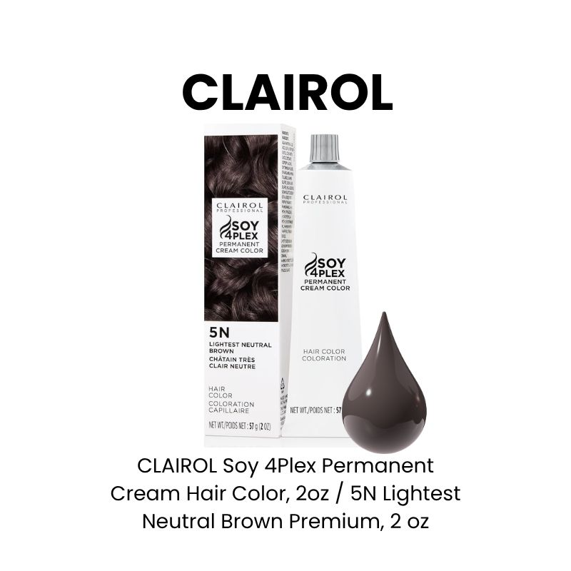 CLAIROL Soy 4Plex Permanent Cream Hair Color, 2oz - 5N Lightest Neutral Brown Premium, 2 oz quantity