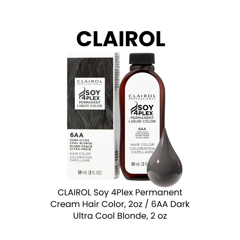 CLAIROL Soy 4Plex Permanent Cream Hair Color, 2oz - 6AA Dark Ultra Cool Blonde, 2 oz quantity