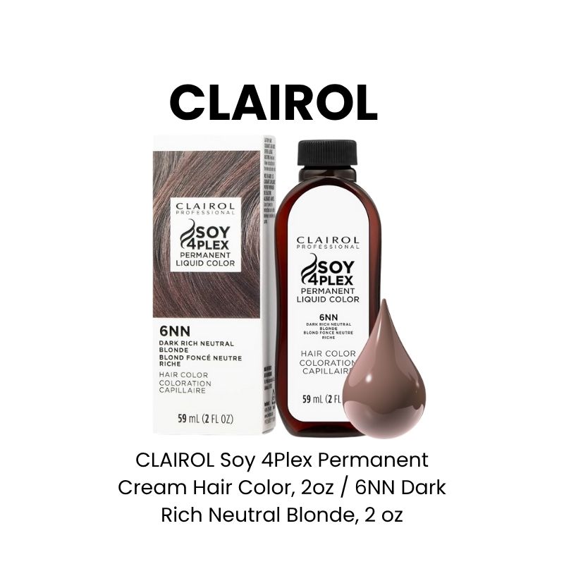 CLAIROL Soy 4Plex Permanent Cream Hair Color, 2oz - 6NN Dark Rich Neutral Blonde, 2 oz quantity