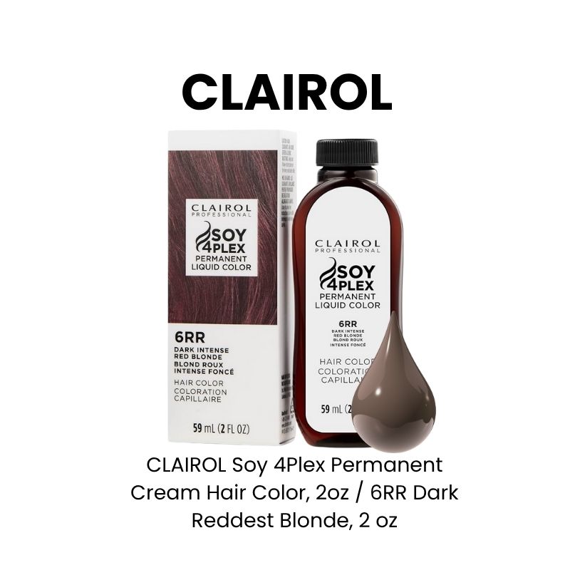 CLAIROL Soy 4Plex Permanent Cream Hair Color, 2oz - 6RR Dark Reddest Blonde, 2 oz quantity