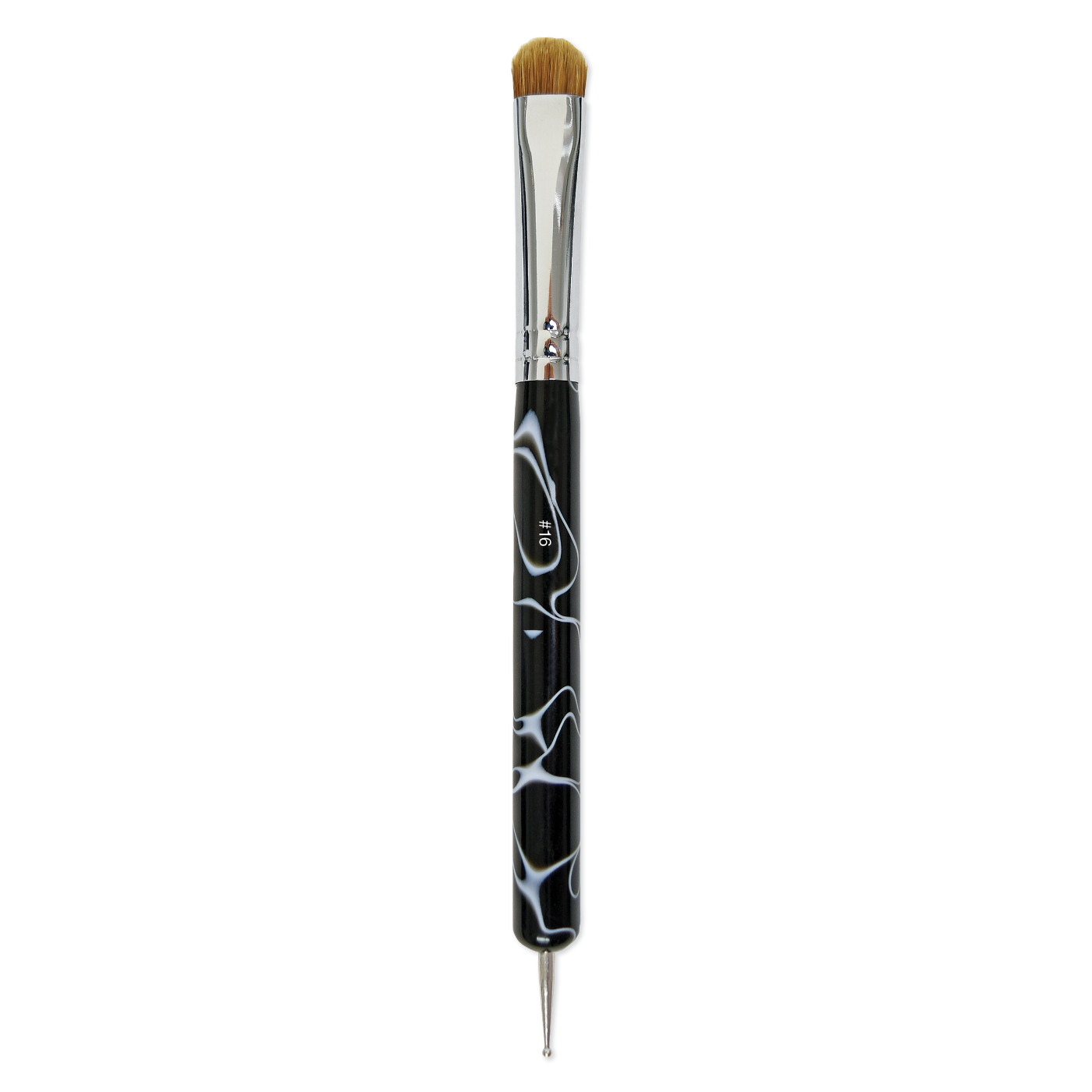 The DL PROFESSIONAL Kolinsky Brush With Dotting Tool 16 – DL-C183 is a versatile tool designed for nail art. It combines a high-quality Kolinsky brush with a dotting tool in a single instrument. This allows nail technicians and nail art enthusiasts to create detailed and precise designs. Brand: DL PROFESSIONAL Material: Brush bristles: Kolinsky hair. Dotting tool: Generally, metal. Handle: Generally, wood or plastic. Kolinsky hair: Known for its elasticity, durability, and ability to retain liquids. Dotting tool: Allows for creating dots and fine details. 2-in-1 design: Combines a brush and a dotting tool in a single instrument. Size 16. Number of Items: 1 tool (brush and dotting tool). Product Benefits: Allows for creating detailed and precise designs. Facilitates the application of different nail art techniques. Saves space and time by combining two tools in one. High durability and liquid retention. Use: The Kolinsky brush is used to apply acrylic and create detailed designs. The dotting tool is used to create dots, lines, and other fine details. Usefull to create professional manicure desings.