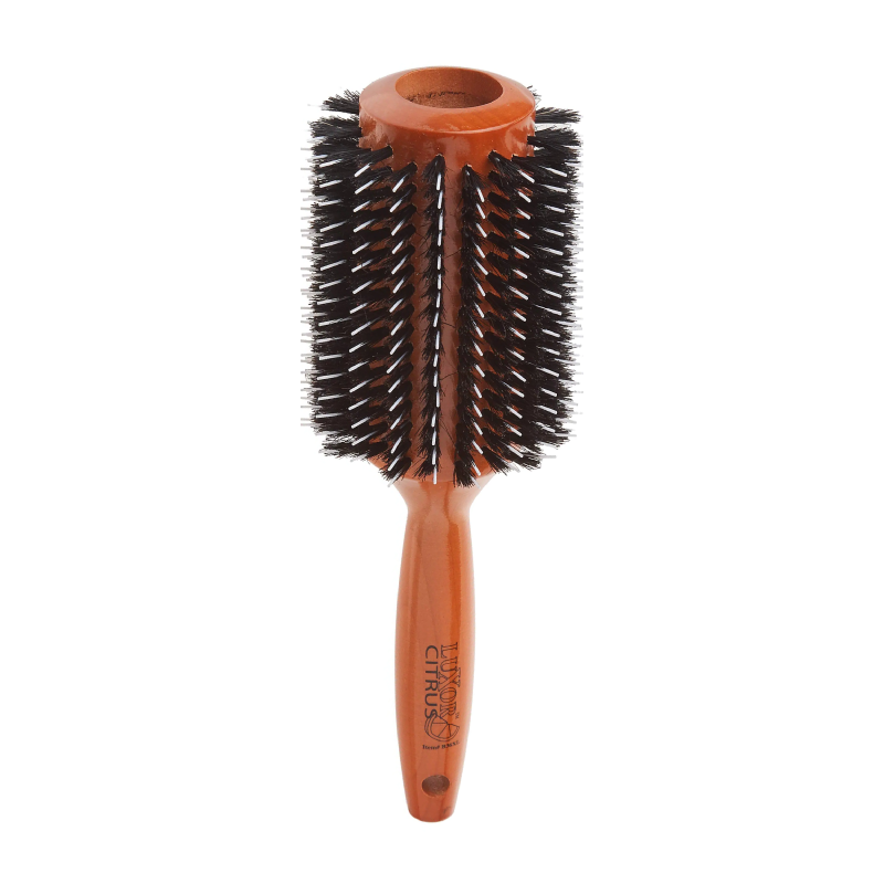 The LUXOR CITRUS B36XXXL an oversized professional hairbrush designed to add volume and shine to hair. Its design is especially intended for long and thick hair. It features boar bristles reinforced with nylon to help distribute the hair’s natural oils and an ergonomic orange wood handle for a comfortable and secure grip during styling.