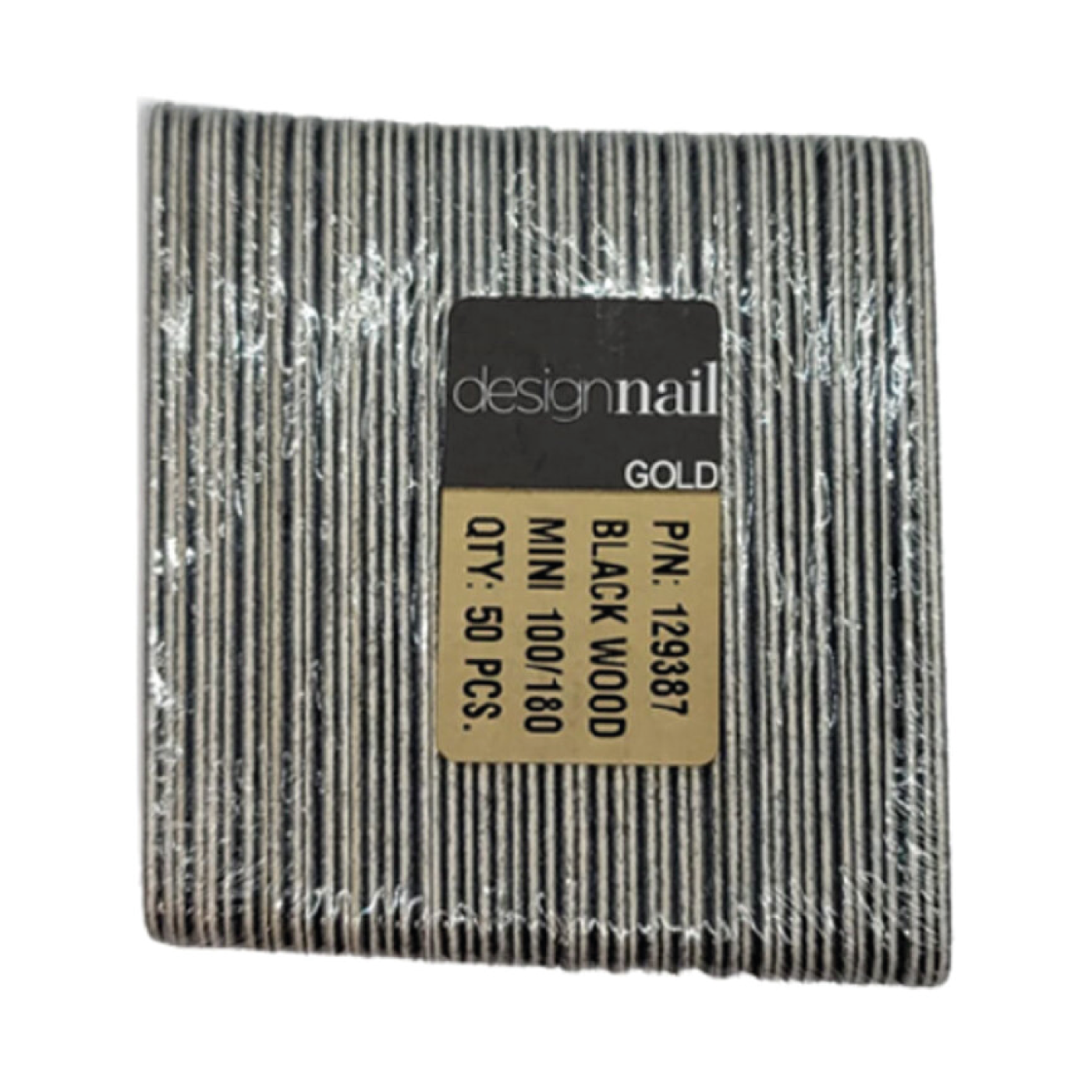 The DESIGN NAIL Mini Black Wood Files are compact, double-sided nail files designed for shaping and refining natural and artificial nails. The dual grit offers versatility: the 100 grit side is effective for shaping and reducing the length or thickness of nails, while the 180 grit side is ideal for refining the shape and smoothing the nail surface. The wooden core provides stability and durability, while the black abrasive surface ensures effective filing. This pack of 50 mini files is convenient for travel, on-the-go touch-ups, or for professional use where smaller files are preferred. Â
