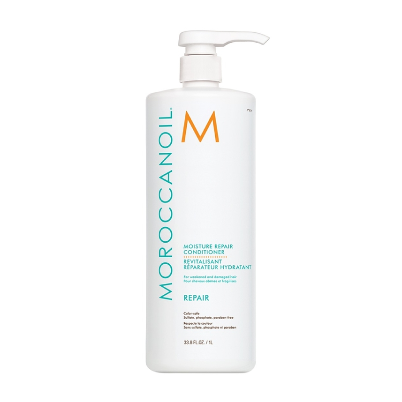 MOROCCANOIL Repair Conditioner is a reparative conditioner designed to gently detangle and restore moisture to weakened or damaged hair. Its argan oil-rich formula, along with keratin and fatty acids, helps to strengthen hair, restore its elasticity, and promote a healthier look and feel. This large size is ideal for frequent use.  Brand: Moroccanoil Type of product: Conditioner Product Benefits: Repairing, Hydrating, Detangling, Strengthening, Improves Elasticity  Content: 33 oz Number of items: 1 Ingredients: Please Check packaging for accurate Ingredient list information. How to use: After shampooing, apply MOROCCANOIL Repair Conditioner from mid-lengths to ends. Leave on for 1-2 minutes and then rinse thoroughly. Disclaimer: Improper use of our products is the customer’s responsibility. Dukanee Beauty Supply is not liable for physical damages, allergies, or health problems resulting from misuse. Always consult the ingredients and materials before purchasing. Keep products out of reach of children. Product information may vary; refer to the packaging for precise details.