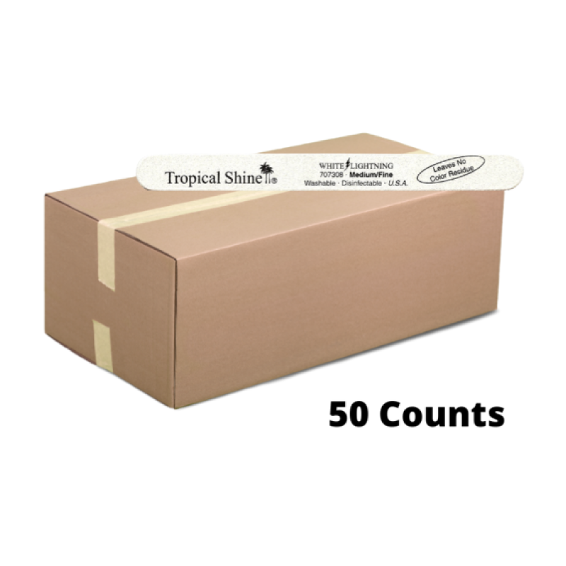 TROPICAL SHINE Washable Disinfectable White Lightning Medium/Fine File 240, 7.5″ 50 Counts – PK707308