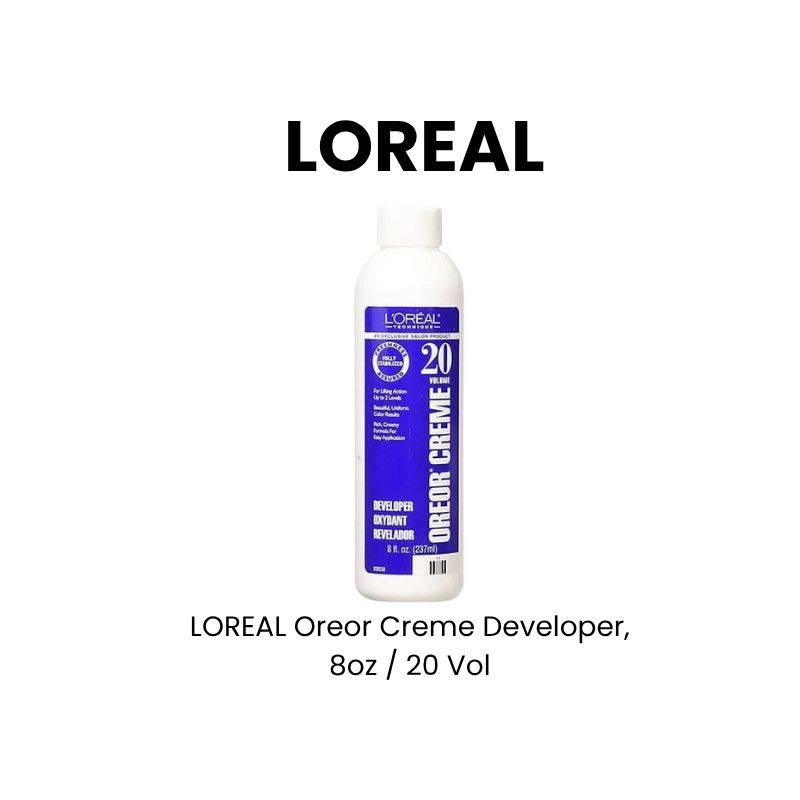 L’Oréal Oreor Creme Developer is designed to mix easily with hair color and bleach, providing consistent, uniform results. Its rich, creamy formula makes application easy and ensures the product stays where it’s applied. It is available in different volumes (20, 30, and 40) to achieve different levels of lift.