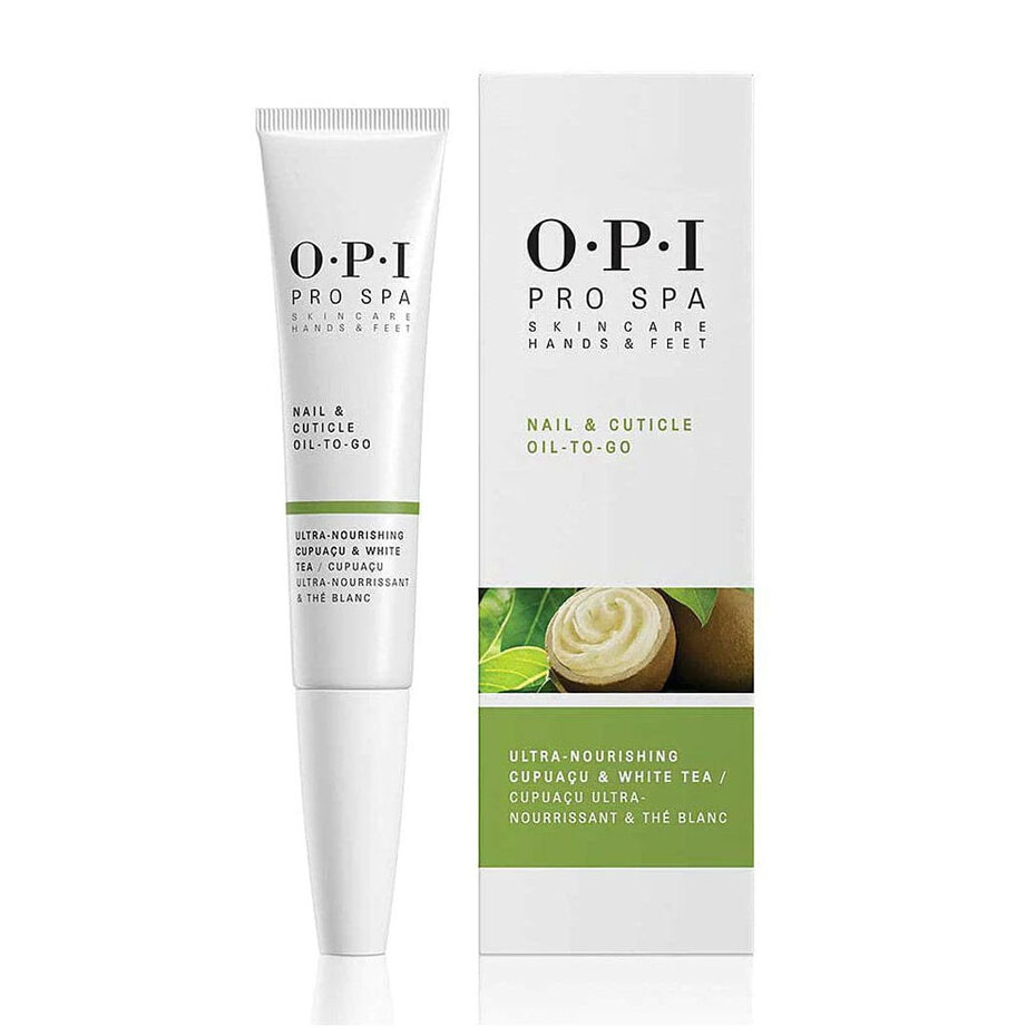 OPI ProSpa Nail and Cuticle Oil To Go is a nourishing formula designed to moisturize and protect your nails and cuticles anytime, anywhere. Enriched with a blend of rich oils such as avocado, sunflower, and kukui nut, this oil helps to condition, strengthen, and replenish moisture to the nails and surrounding skin, promoting softer cuticles and healthier-looking nails. Its convenient, pocket-sized format makes it ideal for carrying with you and applying throughout the day. Brand: OPI Color: Pale yellow (of the oil) Material Feature: Moisturizing, nourishing, fast-absorbing, travel-friendly. Number of items: 1 (7.5 ml / 0.25 fl oz) Product Benefits:Hydrates and conditions cuticles.Strengthens nails.Helps prevent dryness and cracking.Promotes softer and more flexible cuticles.Convenient size for on-the-go use. Ingredients: Persea Gratissima (Avocado) Oil, Helianthus Annuus (Sunflower) Seed Oil, Caprylic/Capric Triglyceride, Gossypium Herbaceum (Cotton) Seed Oil, Aleurites Moluccanus (Kukui) Seed Oil, Lecithin, Parfum/Fragrance, Benzyl Salicylate, Linalool, Citronellol, Limonene, Tocopherol.Please Check packaging for accurate Ingredient list information. How to use: Apply a small amount of oil to the cuticles and skin around the nails. Gently massage to help absorption. Use daily or as often as needed to keep nails and cuticles moisturized. Disclaimer: Improper use of our products is the customer’s responsibility. Dukanee Beauty Supply is not liable for physical damages, allergies, or health problems resulting from misuse. Always consult the ingredients and materials before purchasing. Keep products out of reach of children. Product information may vary; refer to the packaging for precise details.