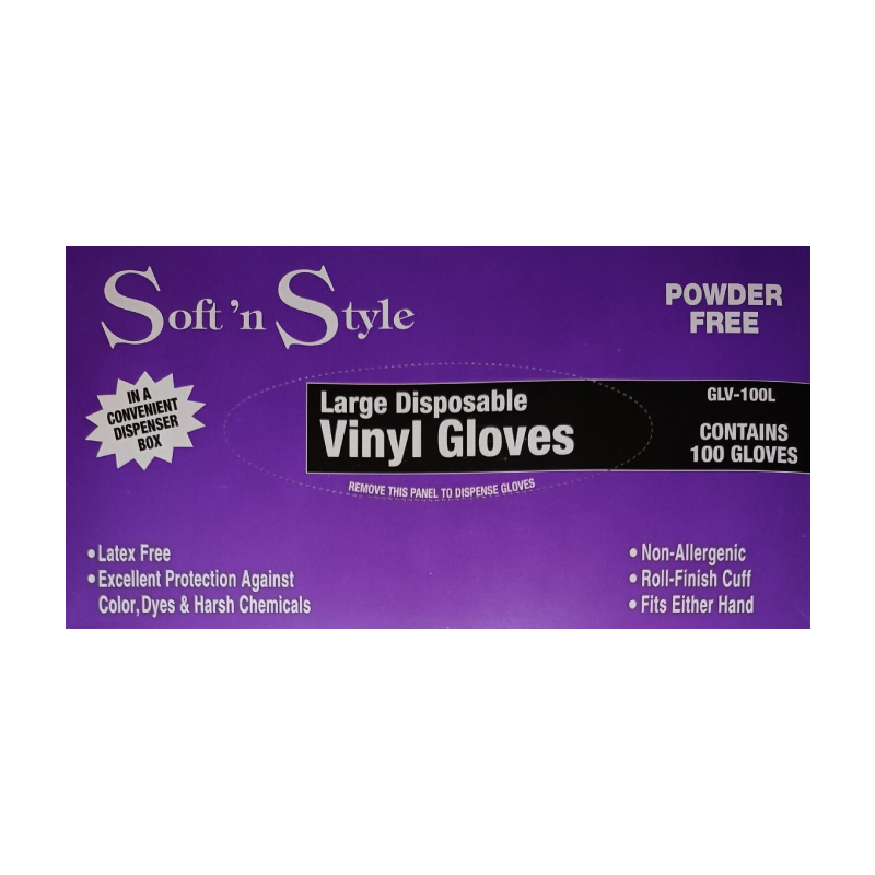 SOFT N STYLE Disposable Vinyl Gloves – 100 Gloves – Large