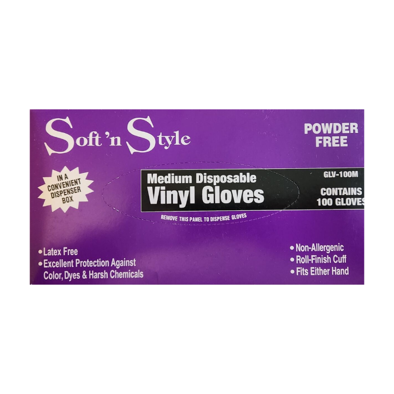 SOFT N STYLE Disposable Vinyl Gloves – 100 Gloves – Medium