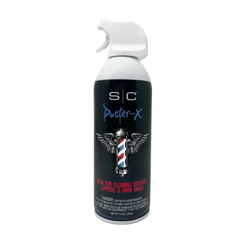 The STYLECRAFT Duster-X Duster Spray Aerosol, 10oz – SC1000D, is a compressed air spray designed to remove dust, hair, and other contaminants from hair clippers, trimmers, scissors, combs, and workstations. It helps maintain the cleanliness and performance of barber and stylist tools. Brand: STYLECRAFT Color: Clear spray. Material Feature: Compressed air in an aerosol can, includes an extension straw for detailed cleaning. Number of items: 1 (10 oz can) Product Benefits: Effectively removes hair and dust from grooming tools and workspaces; helps prolong the life of equipment; convenient and easy to use; portable for on-the-go cleaning. Ingredients: Contains compressed gas propellant. Please Check packaging for accurate Ingredient list information. How to use: Hold the can upright and spray short bursts of air onto the tools or surfaces to be cleaned, keeping a safe distance. Use the extension straw for hard-to-reach areas. Ensure electrical tools are turned off before cleaning. Disclaimer: Improper use of our products is the customer’s responsibility. Dukanee Beauty Supply is not liable for physical damages, allergies, or health problems resulting from misuse. Always consult the ingredients and materials before purchasing. Keep products out of reach of children. Product information may vary; refer to the packaging for precise details.