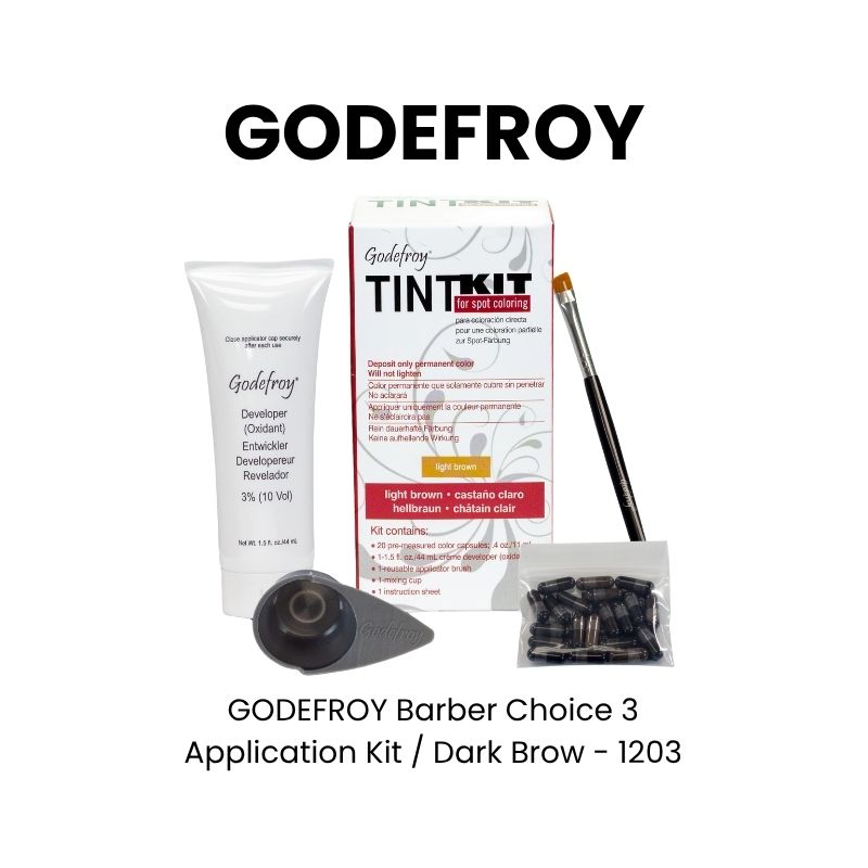 The GODEFROY Tint Kit Hair Color Kit in Dark Brown is a complete hair coloring kit designed for multiple applications. It provides a rich dark brown color that effectively covers grays and enhances natural hair color. This kit typically includes enough product for approximately 20 applications, making it suitable for long-term use or professional settings.